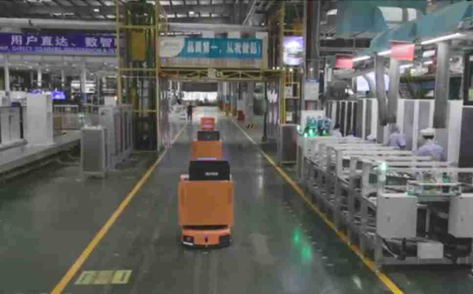 为车载冰箱物流配送打造的智能解决方案,,,,包含产中物流通过潜伏举升AMR搬运至线边,,,产后成品物流智能仓储,,,流程包含产中物流智能齐套入库,,,,线边安灯叫料AMR智能配送至线边,,,成品入库、、、、出库,,通过无人堆高车机器人,,,智能仓储管理替代人工作业管理,,,,实现更高存储、、更高效率、、更具柔性化的解决方案。。。
